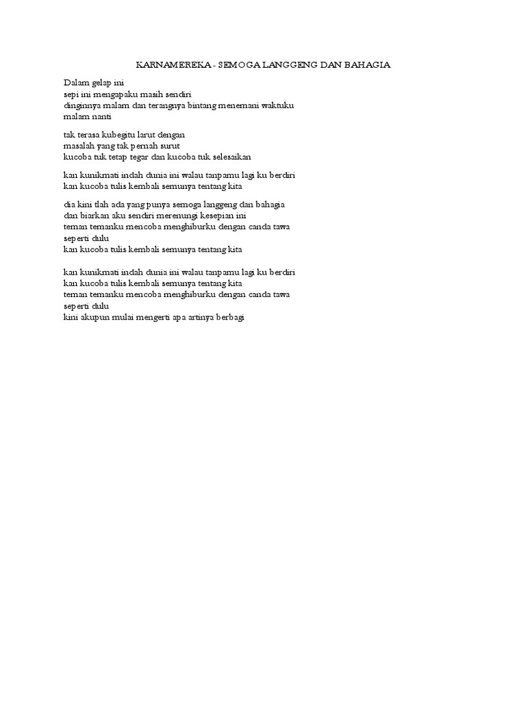 Lirik Lagu Karnamereka Semoga Langgeng Dan Bahagia Pdf